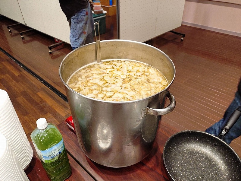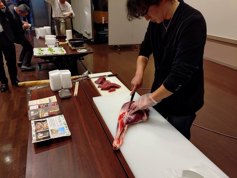 お酒が振る舞われました。温かい猪汁、鹿の足